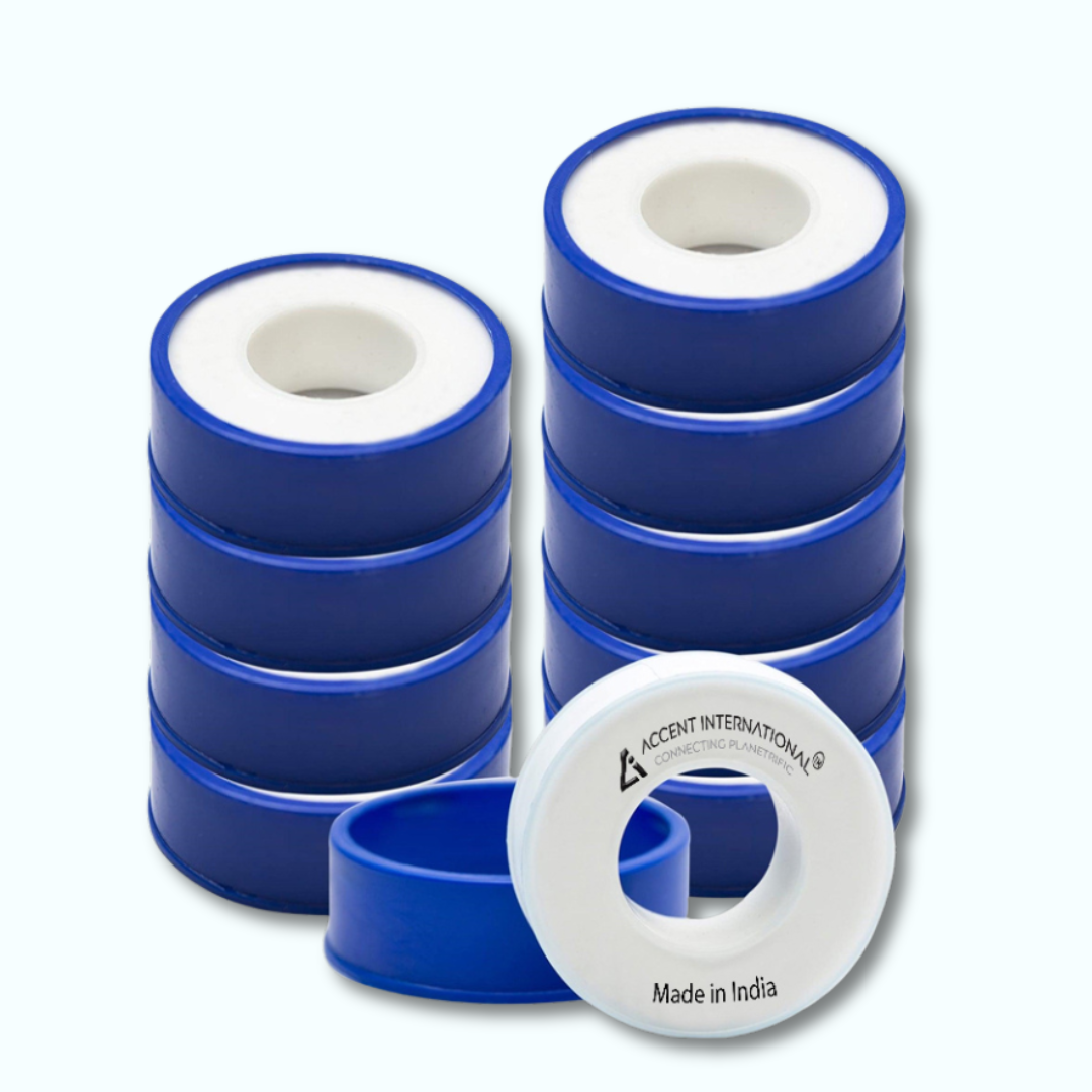 PTFE (Polytetrafluoroethylene) Teflon Tape is a high-quality, non-adhesive thread-sealing solution designed to provide leak-proof joints in threaded pipe connections. It effectively fills thread gaps, prevents seepage, and ensures secure sealing under pressure in plumbing, irrigation, gas, air, and industrial piping systems. Manufactured from 100% virgin PTFE, the tape offers excellent chemical resistance, non-stick properties, and wide temperature tolerance, making it suitable for a wide range of fluid and gas applications.
